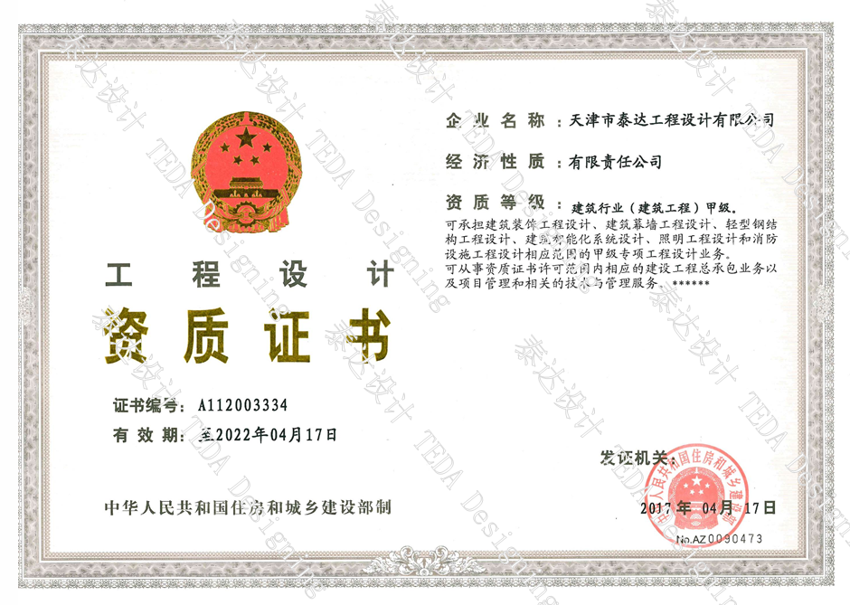 • 歡迎來到天津市泰達(dá)工程設(shè)計(jì)有限公司!