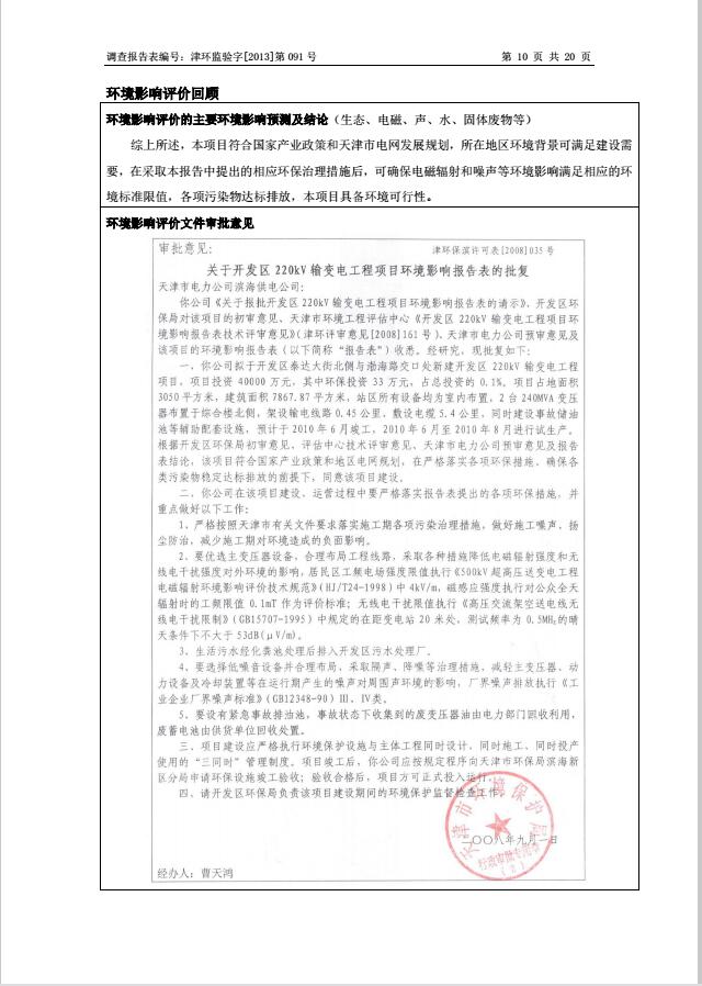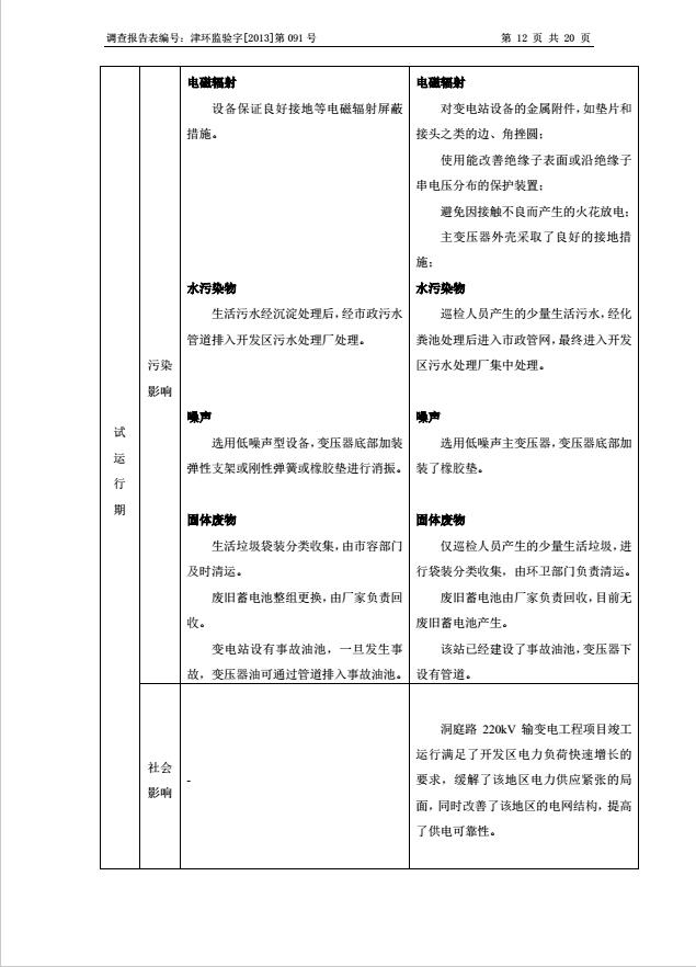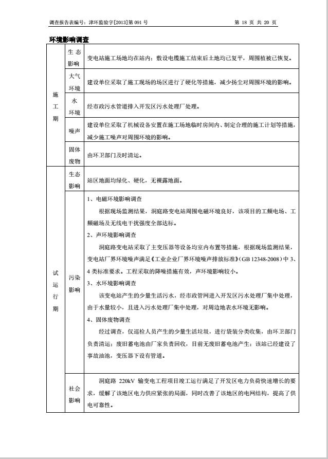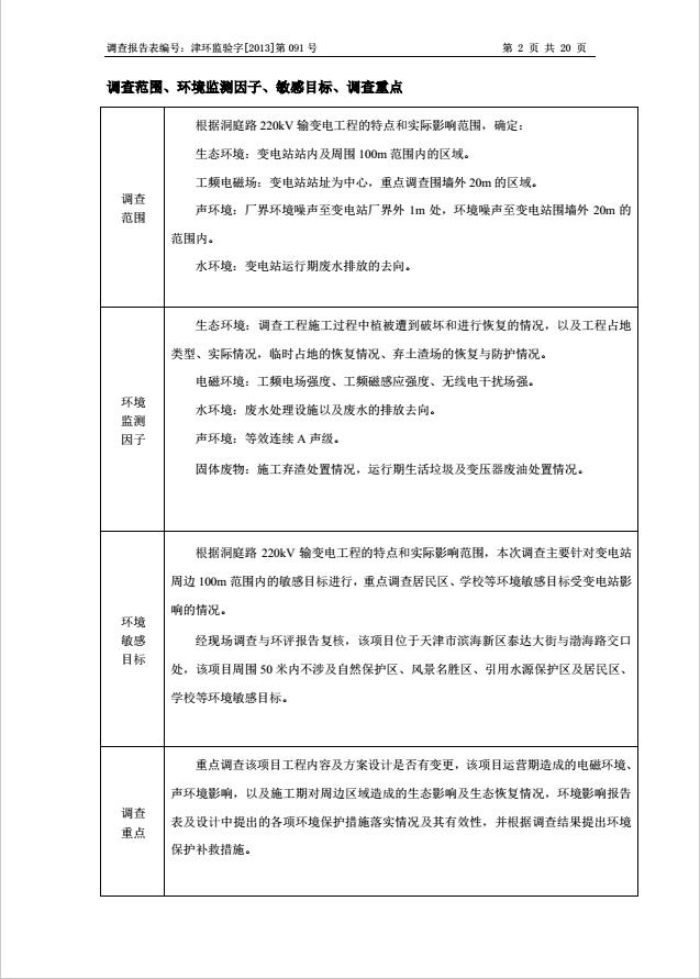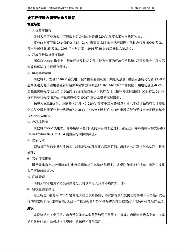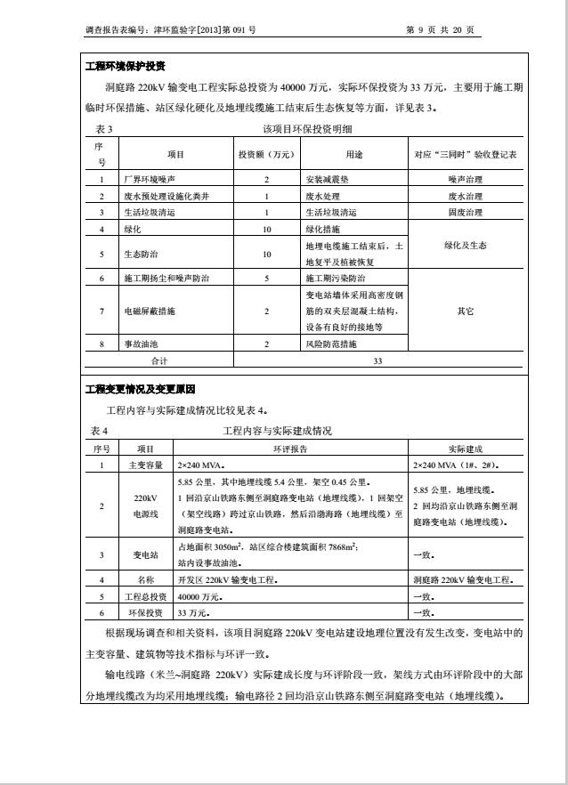 洞庭路220kV輸變電工程驗收調(diào)查表
