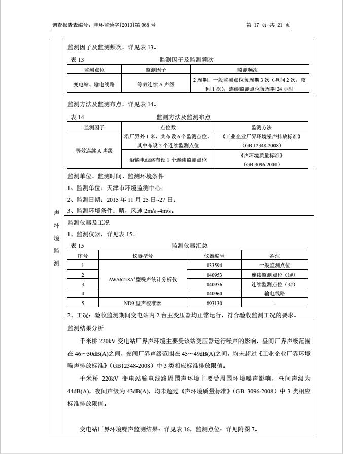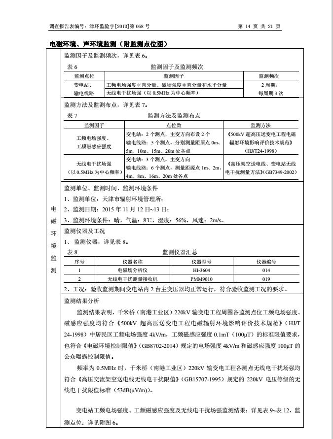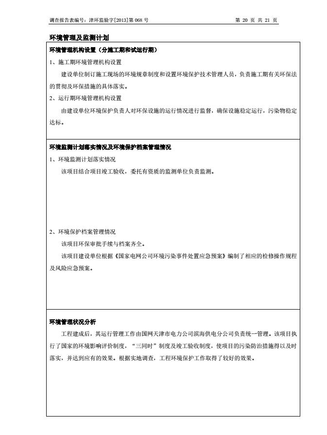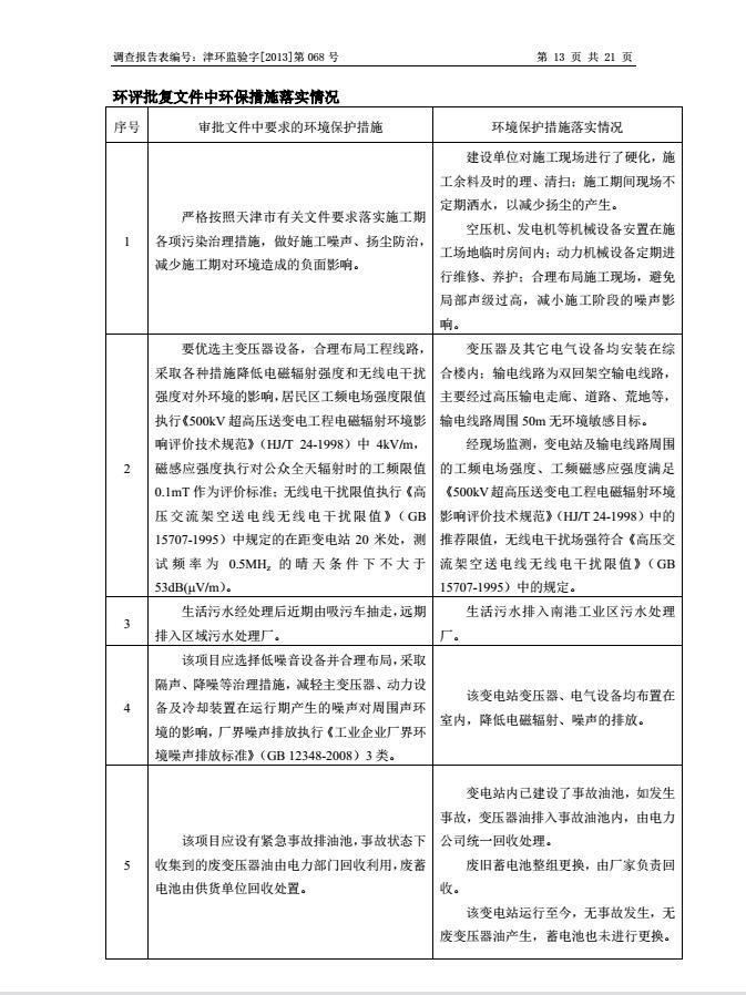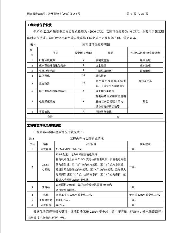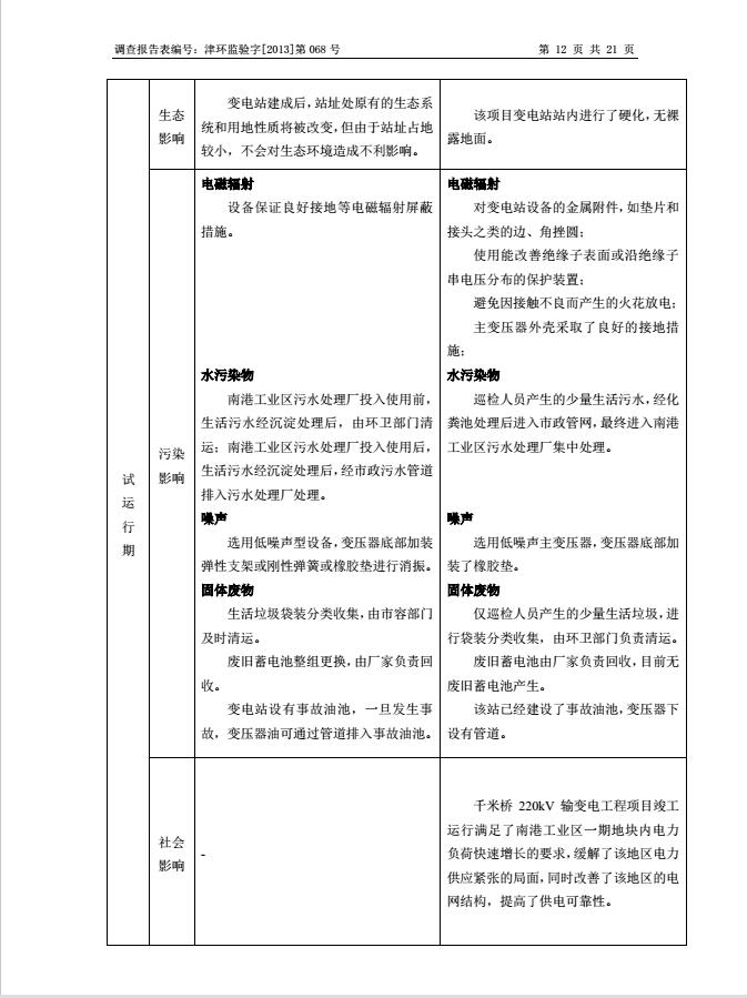 千米橋220kV輸變電工程驗(yàn)收調(diào)查表