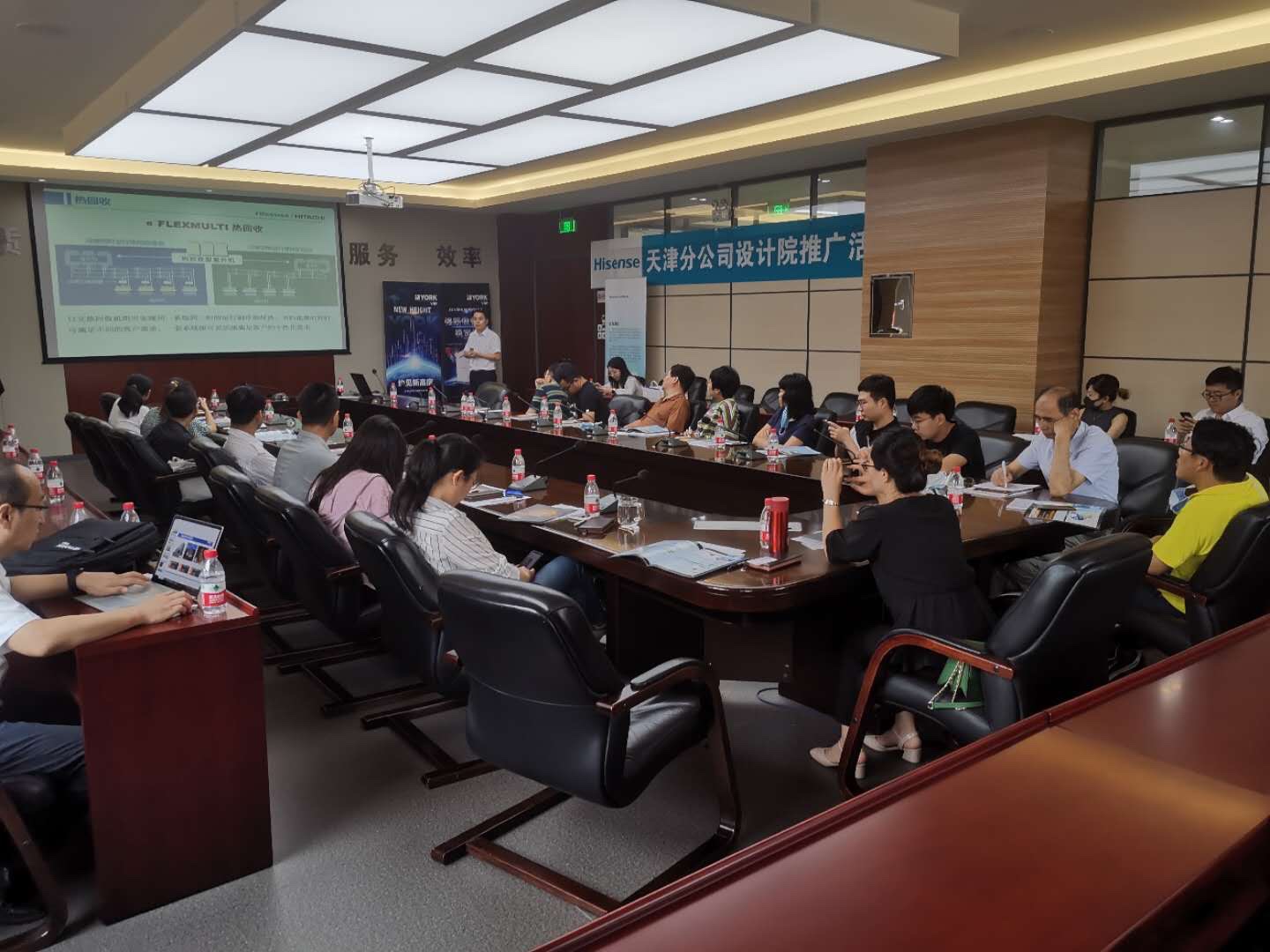交流過程中,約克及海信公司代表分別就更新機(jī)、空調(diào)低溫制熱及被動(dòng)房(新風(fēng)+空調(diào)一體機(jī))等產(chǎn)品進(jìn)行了詳細(xì)講解;參加會(huì)議的設(shè)計(jì)院暖通專家就相關(guān)技術(shù)問題進(jìn)行充分討論。通過本次交流,為暖通專業(yè)技術(shù)發(fā)展提供了新思路。