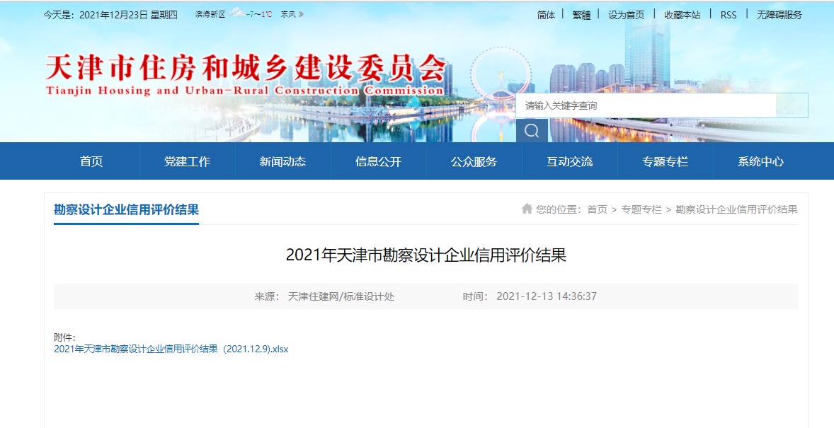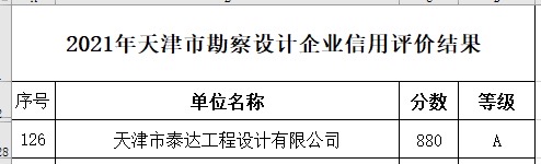 - 泰達(dá)設(shè)計(jì)榮獲2021年天津市勘察設(shè)計(jì)企業(yè)信用評價(jià)A級