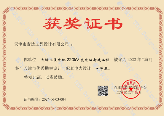 近日,我公司設(shè)計(jì)完成的天津三星電機(jī)220kV變電站新建工程等多項(xiàng)工程,分別榮獲“海河杯”天津市優(yōu)秀勘察設(shè)計(jì)一、二、三等獎(jiǎng)。“海河杯”作為天津市勘察設(shè)計(jì)領(lǐng)域的最高級(jí)別獎(jiǎng)項(xiàng),獲獎(jiǎng)工程代表了天津市勘察設(shè)計(jì)領(lǐng)域的最高技術(shù)水平,截至本年度公司已連續(xù)第七年獲此殊榮。