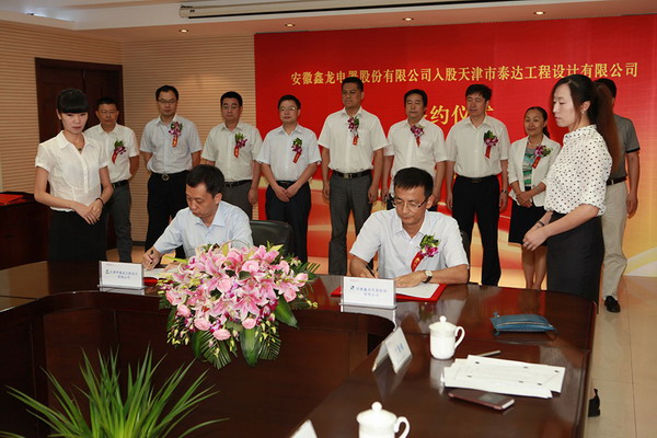 2014年7月8日上午9:30分,安徽鑫龍電器股份有限公司入股天津市泰達(dá)工程設(shè)計(jì)有限公司簽約儀式成功舉行,這標(biāo)志著泰達(dá)設(shè)計(jì)公司迎來(lái)了新的發(fā)展機(jī)遇,鑫龍電器將與濱海電力、泰達(dá)設(shè)計(jì)共同攜手、共創(chuàng)未來(lái)。與會(huì)領(lǐng)導(dǎo)表達(dá)了對(duì)泰達(dá)設(shè)計(jì)公司未來(lái)發(fā)展的美好愿望和良好信心,我們相信,有各位領(lǐng)導(dǎo)的大力支持、有全體員工的共同努力,泰達(dá)設(shè)計(jì)公司必將健康發(fā)展、走向輝煌!