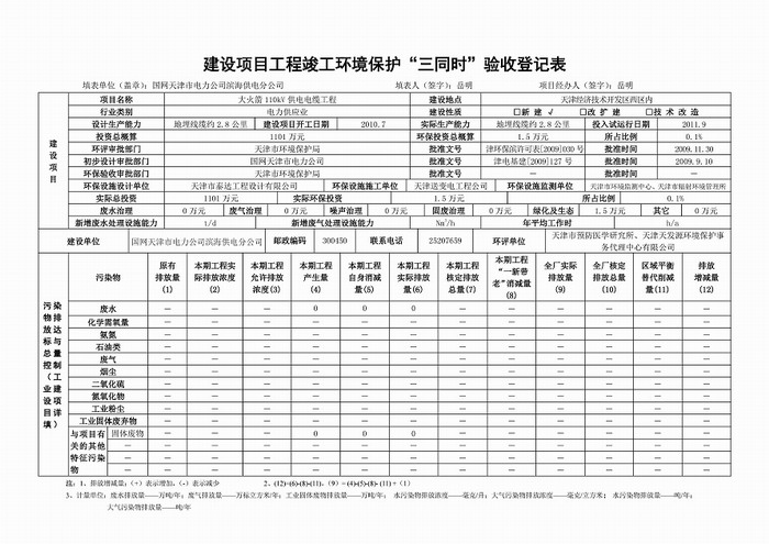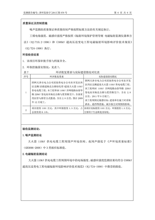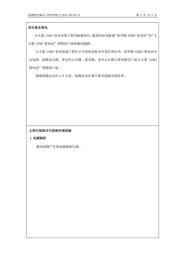 大火箭110kV供電電纜工程環(huán)保驗收監(jiān)測報告表公示