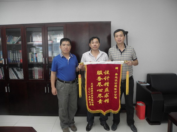 - 桂枝達(dá)雅意 錦旗表嘉許——記建筑設(shè)計(jì)分公司富謙項(xiàng)目獲贈(zèng)錦旗2015年9月21日,天津市富謙科技發(fā)展有限公司總經(jīng)理王雄文到訪泰達(dá)設(shè)計(jì)公司,向我公司在富謙科技發(fā)展有限公司新建廠區(qū)項(xiàng)目中提供的優(yōu)質(zhì)服務(wù)表示感謝,并送上印有“設(shè)計(jì)精益求精,服務(wù)盡心盡責(zé)”錦旗。公司董事長(zhǎng)兼總經(jīng)理武文杰、建筑設(shè)計(jì)分公司經(jīng)理黃濤熱情接待了王雄文總經(jīng)理一行。